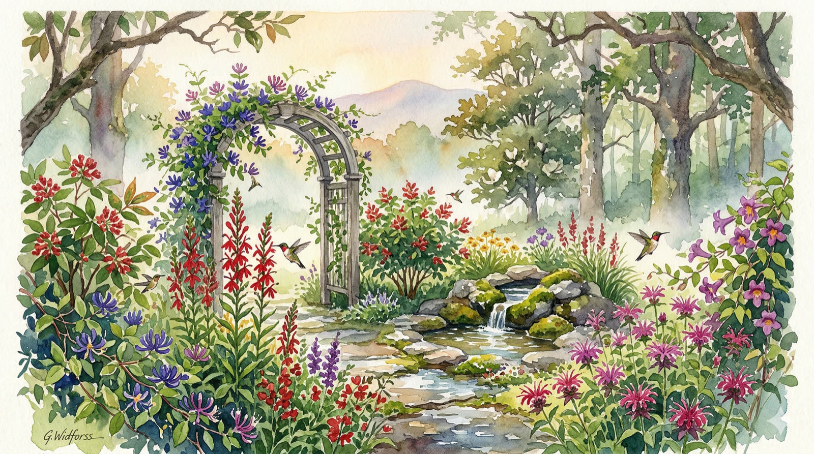 Southeast native plants that attract hummingbirds with continuous blooms March through October.